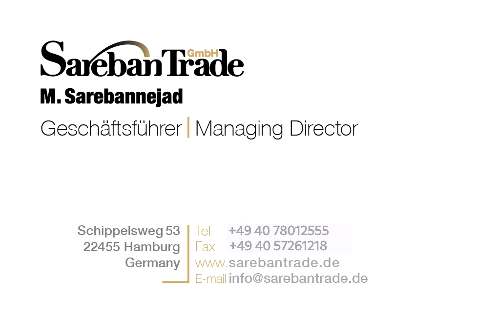 E-Mail: info@sarebantrade.comVertretungsberechtigte Geschäftsführer: Ozra Massah